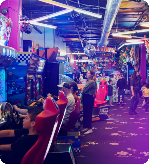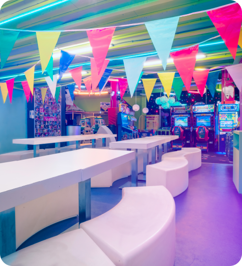 In the heart of the action and arcade games, enjoy an immersive experience. Take advantage of our large tables to set out your cake and gifts!