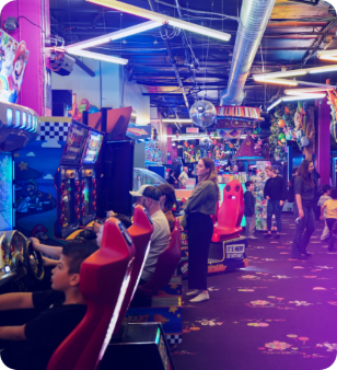 A large, intimate room away from the hustle and bustle of the arcade that can accommodate around ten children and their parents. Enjoy a secure area to store your personal belongings.